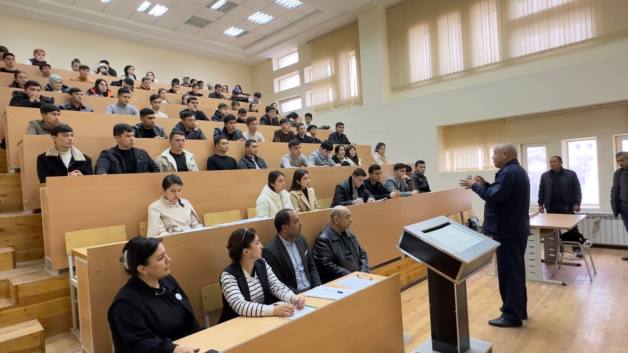 11 yanvar kuni Tarix va yuridik fakulteti tyutorlari M.O'.Ro'ziyev, G.F.Xolova va T.M.Aslonovalar o'zlariga biriktirilgan 5-3 YURES 23, 5-1SIYOS 23 va 5-1 FALS 23 guruh talabalari bilan birgalikda Buxoro viloyat Favqulotda vaziyatlar boshqarmasi hayot faoliyati xavfsizligini o'qitish markazi boshlig'i mayor Ro'ziyev Rustam, shu markaz o'qituvchisi Ziyodullayev Baxriddin va BuxDU Fuqaro va mehnat muhofazasi sektori muxandislari Boltayev Fatillo va Kamolov Jamollar ishtiroklarida "Yong'indan ogohlik" mavzusida Kuz-qish mavsumini betalofot o'tkazish is gazidan zaharlanishning oldini olish borasida tushuntirildi.