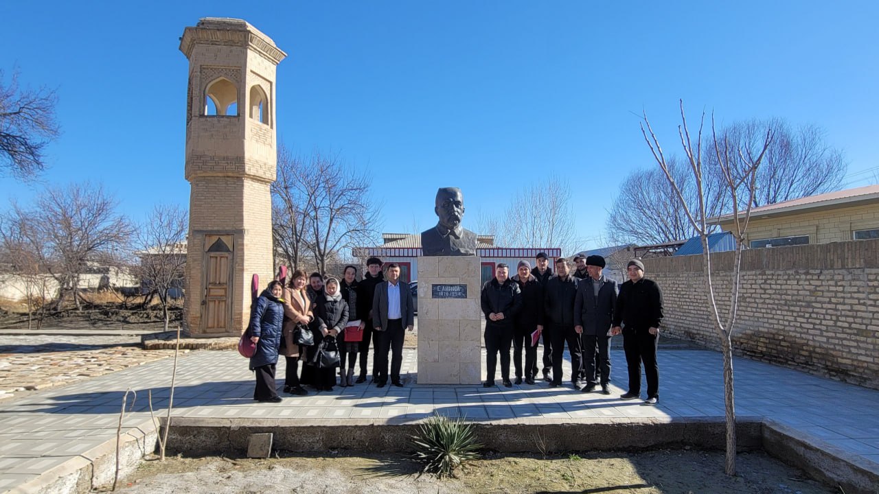 31-yanvar kuni San'atshunoslik va pedagogika fakulteti Musiqa ijrochiligi va madaniyat kafedrasi mudiri professor T.I.Rajabov 12-1 MSh -23 sirtqi guruh talabalari bilan G'ijduvon tumanida joylashgan S.Ayniy muzeyiga tashrif buyurdilar. S.Ayniyning hayot yo'li va mehnat faoliyati bilan yaqindan tanishdilar.