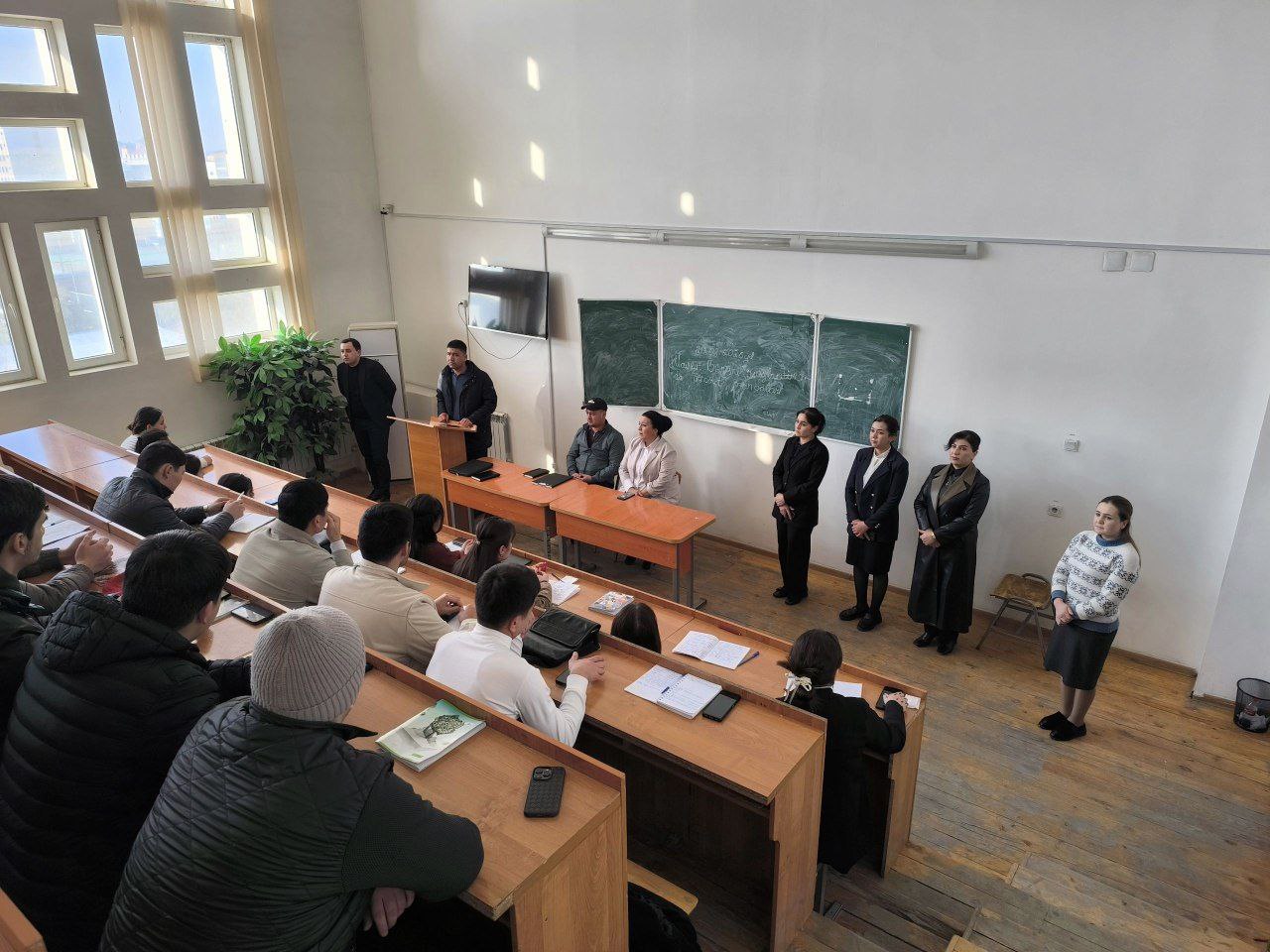 20-fevral kuni Iqtisodiyot va turizm fakulteti tyutorlari va yoshlar masalalari bo'yicha dekan o'rinbosari N.L.Jiyanov va Buxoro viloyati IIB terrorizmga qarshi kurash boshqarmasi xodimi mayyor Rahmutllayev Islom Ikromovich va Qasimov Suxrob bilan "Biz ekstrimizm va terrorizmga qarshimiz!" mavzusida profilaktik suhbat bo'lib o'tdi. Suhbat davomida talabaga taqiqlangan saytlarga kirmaslik, huquqbuzarlik va jinoyatchilikning oldini olish, hozirgi zamonda dolzarb boʻlib turgan "ommaviy madaniyat", ijtimoiy tarmoqlardagi firibgarlik, kiberjinoyatchilikka qarshi kurashish toʻgʻrisida tushunchalar hamda kerakli maʼlumotlar berildi.