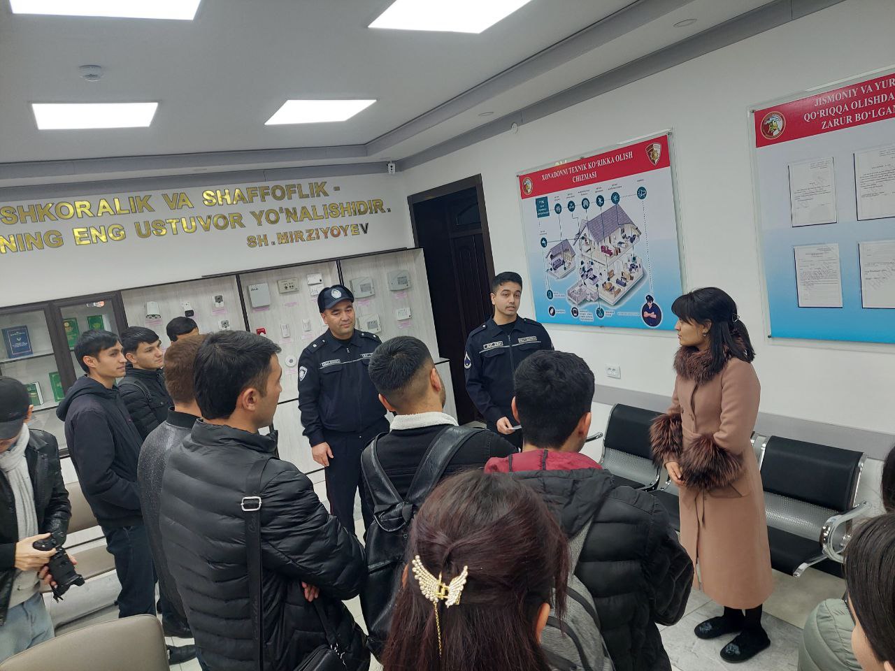 O‘zbekiston Respublikasi Oliy va o‘rta maxsus ta’lim vazirligining 2022-yil 13-dekabrdagi 4/18-1/3-56-sonli xati ijrosi yuzasidan Buxoro davlat universitetida tahsil oluvchi talaba-yoshlarni vatanparvarlik ruhida tarbiyalash maqsadida “Mard askar–yoshlarga namuna” shiori ostida 19 dekabr kuni Fizika -matematika fakulteti talabalarini Vatanga bo'lgan muhabbat ruhida tarbiyalash maqsadida O'zbekiston Respublikasi Milliy Gvardiyasi Buxoro viloyat qo'riqlash boshqarmasiga tashrif buyurdi. Tashrif jarayonida Qo'riqlash boshqarmasi xodimi N.S.Mavlonov talabalarga qo'riqlash xizmatiga ishga qabul qilish uchun kerakli hujjatlar yo'riqnomasi tushuntirib berildi.