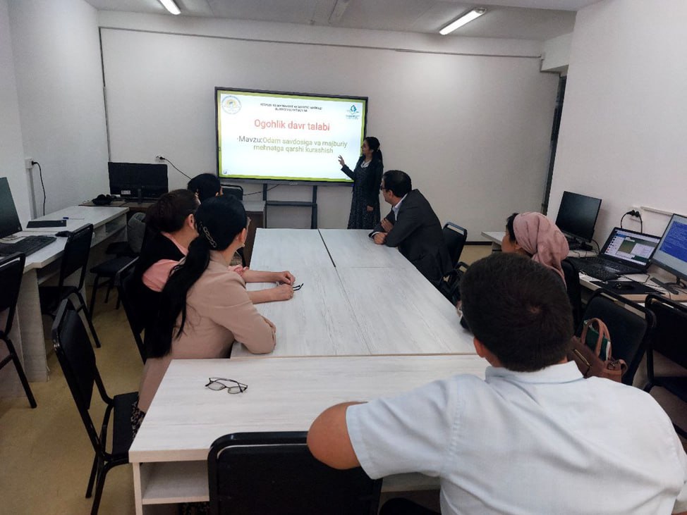 11-aprel kuni Axborot tizimlari va raqamli texnologiyalar kafedrasida yot g'oyalar ta'siriga tushib qolishning oldini olish maqsadida "Ogohlikni men qanday tushunaman?" mavzusida ma'rifat soati o'tkazildi. Mavzu yuzasidan kafedra o'qituvchisi Z.Adizova so'zga chiqib, majburiy mehnatning turli shakllari xususida so'z yuritdi.