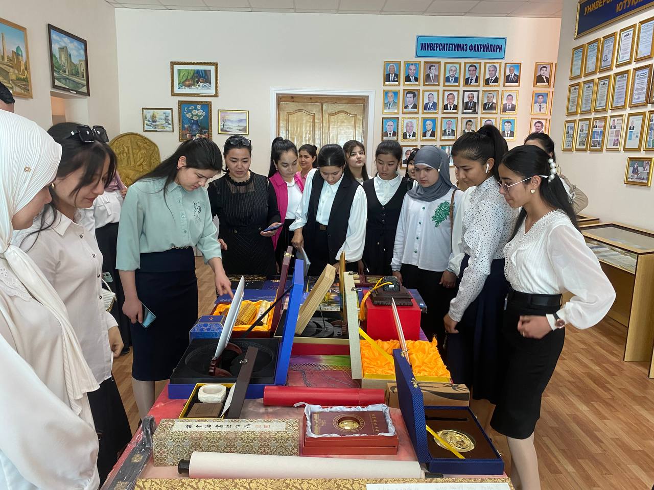 22-aprel kuni BuxDU Tarix va yuridik fakulteti tyutori M.Muradova o'ziga biriktirilgan Amaliy psixologiya ta'lim yo'nalishi 1-bosqich talabalari bilan birgalikda BuxDU "Ilmiy amaliy muzey-laboratoriya"siga tashrif buyurishdi. Talabalarga universitetimiz tarixiga oid nodir eksponatlar, tarixiy fotosuratlar, universitet muzeyiga professor o`qituvchilar tomonidan sovg'a qilingan turli sovg'a-suvinerlar haqida ma'lumotlar berildi. Talabalar o'zlarini qiziqtirgan savollarga javob oldilar va katta taassurotga ega bo`ldilar.