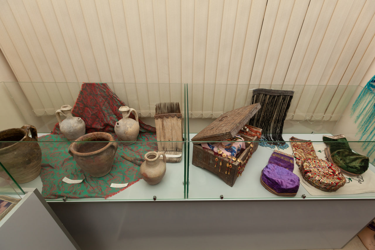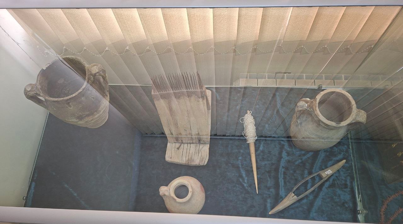 In the first exposition, household items belonging to the end of the 19th century, such as Urchuq, a wool combing device, a spinning wheel, a milk container, and ceramic bowls, are widely available.