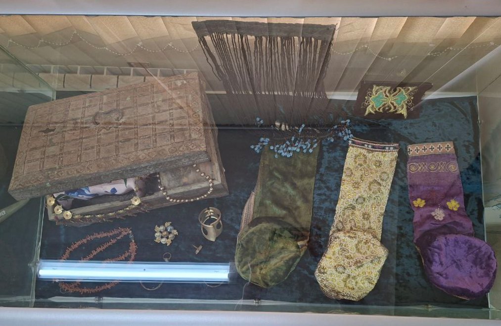 In the second exposition, the XIX century – At the beginning of the 20th century, Bukhara women from wealthy families wore kultapushak covered with gold embroidery. wore.