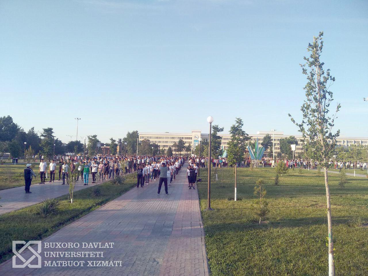 14-may kuni Universitet talabalari "Biz sog'lom turmush tarafdorimiz" shiori ostida ertalabki badantarbiya mashg'ulotlarida ishtirok etishdi. Badantarbiya mashg'ulotlari viloyat favvoralar maydonida bo'lib o'tdi va ushbu mashg'ulotlarda barcha professor-o'qituvchilar hamda 2000ga yaqin talabalar ishtirok etishdi.