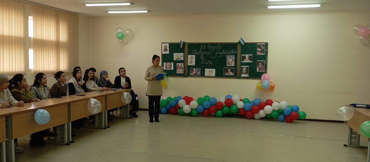 YUNESCO tashkiloti tashabbusi bilan har yili noyabr oyining 3-payshanba kuni “Xalqaro faylasuflar” kuni sifatida keng nishonlanadi. Ushbu munosabat bilan Tarix va yuridik fakulteti "Islom tarixi va manbashunosligi, falsafa" kafedrasi o`qituvchilari va Falsafa yo`nalishi 5-1FALS-24, 5-1FALS -23 talabalari tomonidan “Xalqaro faylasuflar kuni” mavzusidagi ilmiy-abadiiy-musiqiy tadbir tashkil etildi.