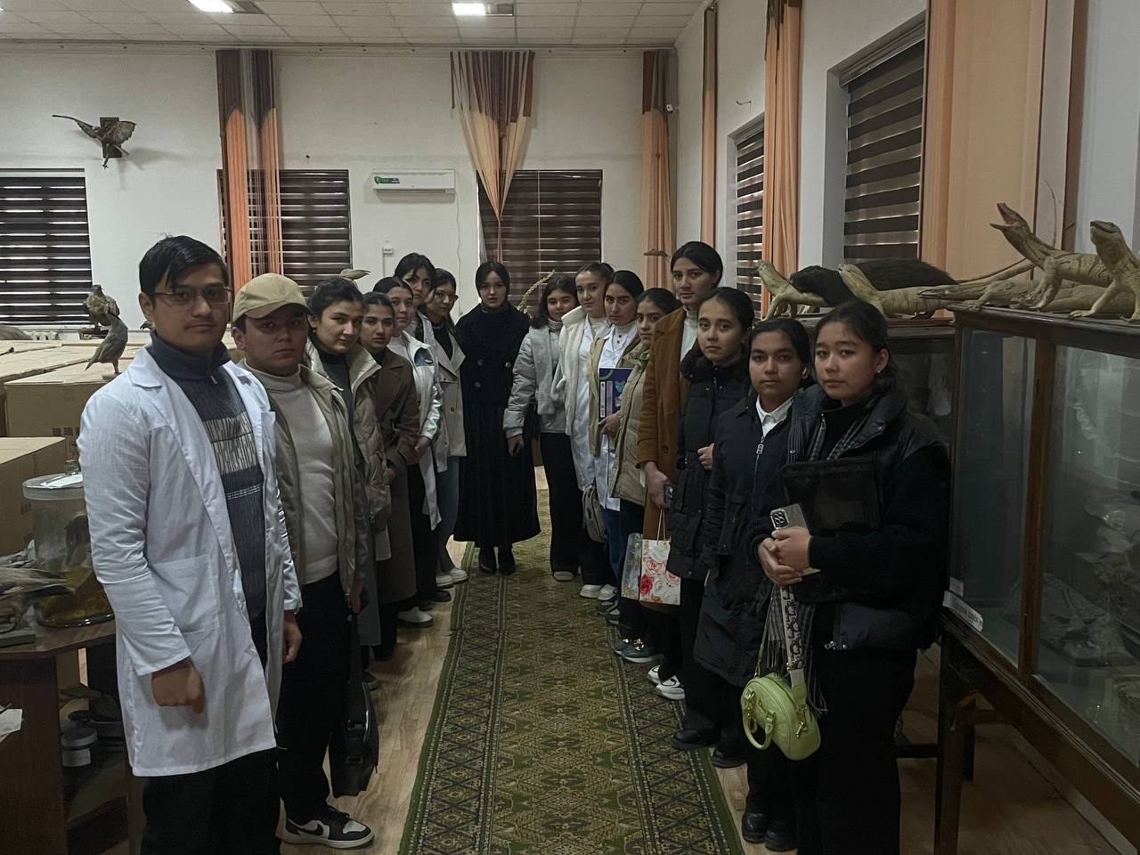 2026-yilning 13-mart sanasida Buxoro davlat universiteti Tabiiy fanlar va agrobiotexnologiya fakulteti tyutori A.A.Nasriyev tomonidan 2-2 BIO 25 guruh talabalari ishtirokida Tabiiy fanlar va agrobiotexnologiya fakultetida tashkil qilingan "Zoo muzey"ga tashrif amalga oshirildi.