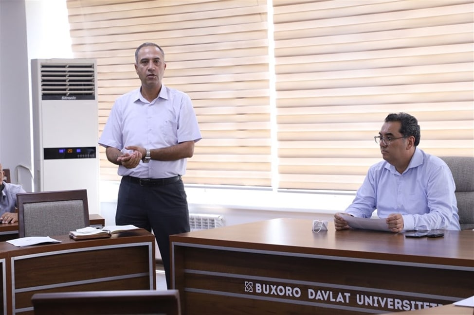 Buxoro davlat universiteti rektori, professor Obidjon Xamidov hamda Korrupsiyaga qarshi kurashish "Komplayens-nazorat" tizimini boshqarish bo`limi boshlig`i Yorqin Quliyev, fakultet dekanlari, kafedra mudirlari bilan birga universitetda korrupsion holatl
