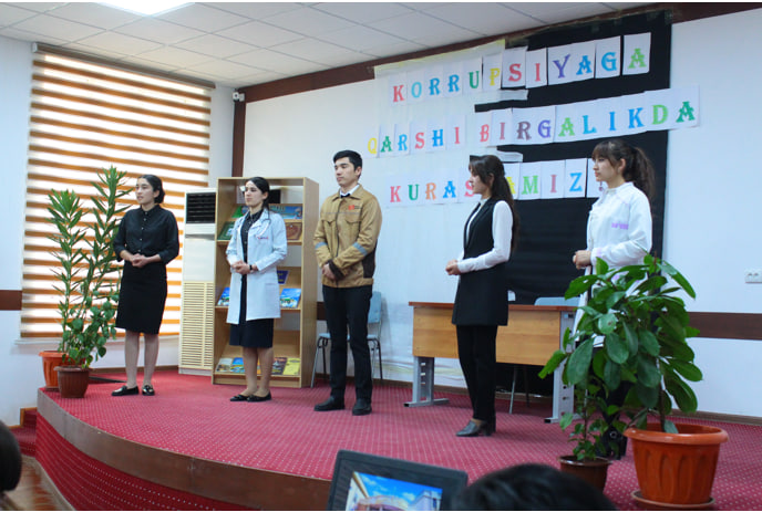 Buxoro davlat universiteti Agronomiya va biotexnalogiya fakultetida tyutorlar va fakultetning faol talabalari tomonidan "Korrupsiyaga qarshi birgalikda kurashamiz" nomli tadbir oʻtkazildi!.Tadbirni fakultet dekani X.T.Artikova boshlab berdilar.Tadbir mehmoni Buxoro davlat universitetining korrupsiyaga qarshi kurash boʻlimi boshligʻi Kuliyev Yorqin Karimovich boʻldilar.Tadbirda korrupsiyaga qarshi sahna koʻrinishlari, she'r va qoʻshiqlar , musiqali chiqish va mavzuga oid fakultet talabasi Obloqulov Aminjon tomonidan tayyorlangan mavzuga oid viderolik namoyish etildi.