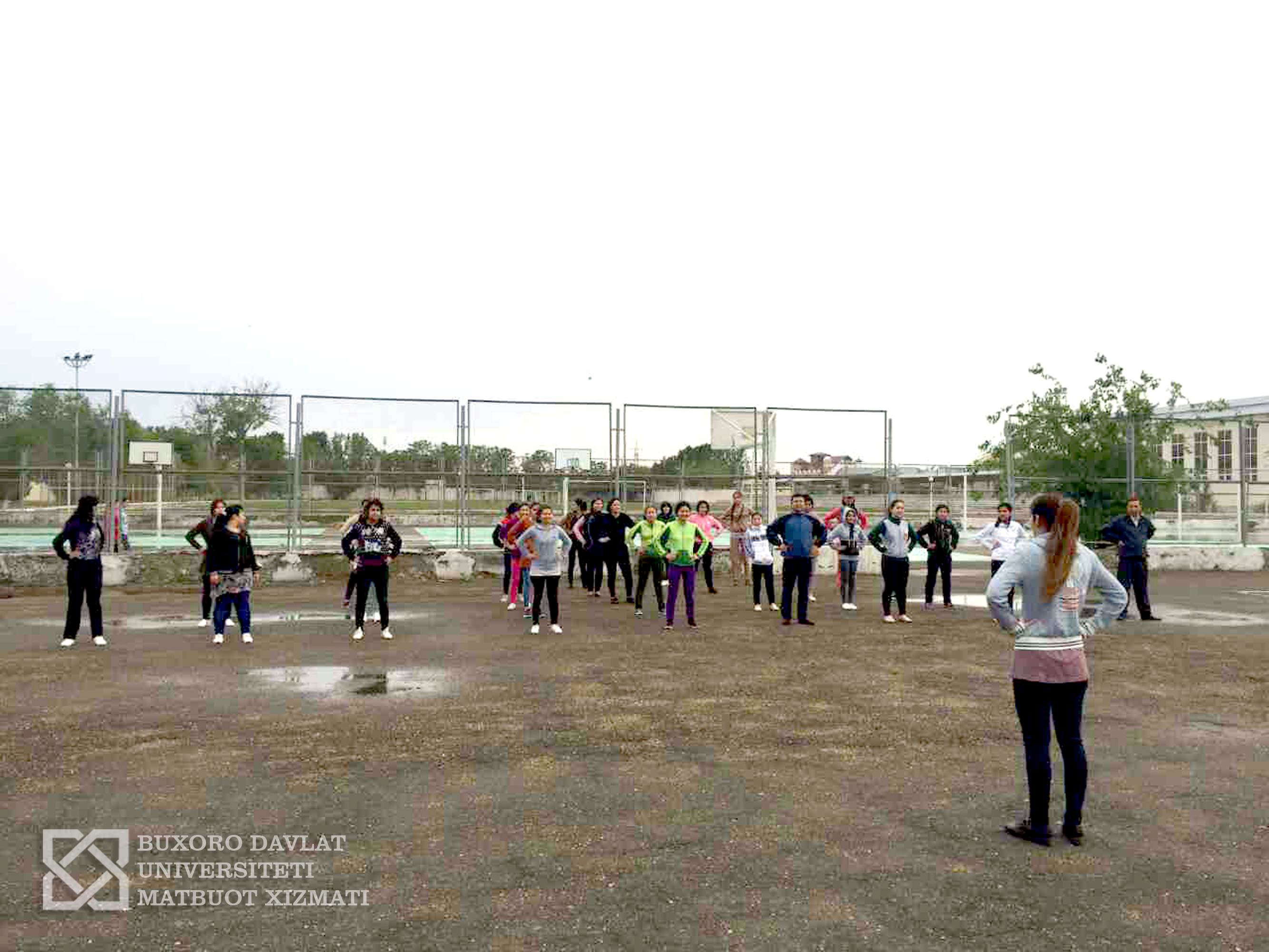Jismonan yetuk yoshlarni tarbiyalashda badantarbiya mashg'ulotlarining o'rni beqiyos. Sog'lom turmush tarzining asosiy talablaridan biri esa ertalabki badantarbiya mashg'uloti bilan shug'ullanishdir. Prеzidеntimizning 2-tashabbuslari "O'quvchi - talabalarni jismoniy chiniqtirish va sport sohasida o'z qobiliyatini namoyon qilishlari uchun zarur sharoitlar yaratib berish masalalari"ning amaldagi isbotini 24-aprel kuni o'tkazilgan "Sog'lomlashtirish kuni" misolida ko'rishimiz mumkin.Buxoro davlat universitetining yoshlar kengashi matbuot kotibi va media guruhi rahbari Xalilova Shaxlo Ravshanovna tashabbusi bilan Yoshlar bilan ishlash, ma'naviyat va ma'rifat bo'limi uslubchisi S. Muhlisov va Musiqa ta'limi yo'nalishi o'qituvchisi T. Rajabov bilan faol yoshlar tongni badantarbiya mashg'uloti bilan qarshi olishdi.