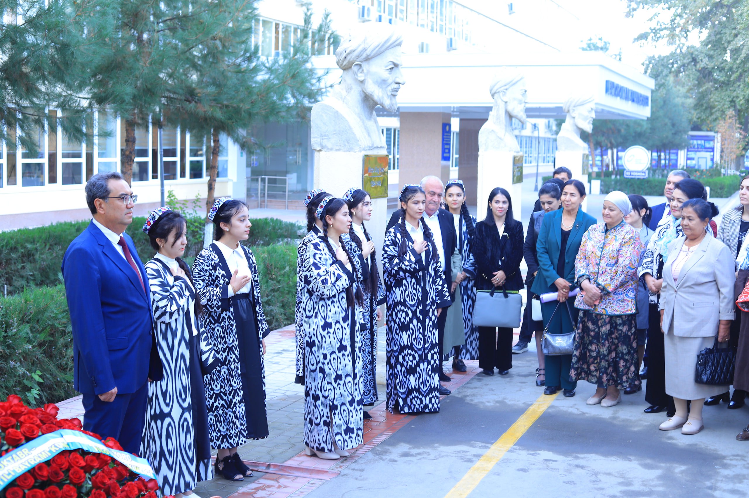 По случаю 36-летия присвоения узбекскому языку статуса государственного и 21 октября - дня праздника узбекского языка, рано утром в Бухарском государственном университете начались торжества с возложения цветов к бюсту Алишера Навои, великого поэта, султана речи. началось с церемонии.