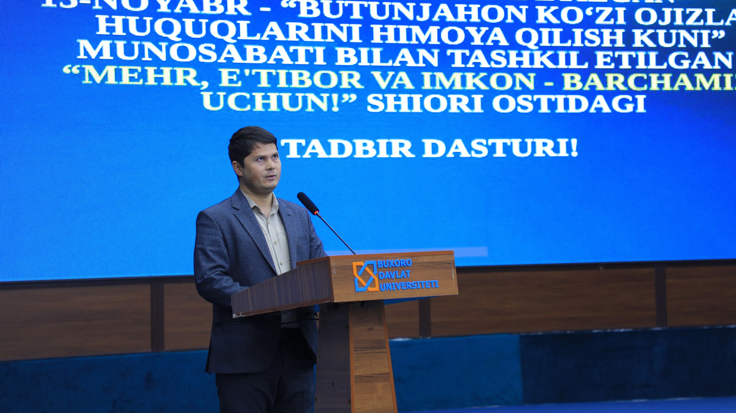 Молодежный союз Бухарского государственного университета “Волонтерский центр BuxDU” по инициативе Общества слепых совместно с Советом Бухарской области 13 ноября – «Всемирный день защиты прав слепых» в связи с «Добротой, вниманием и возможностями— для всех нас!» мероприятие прошло под лозунгом.