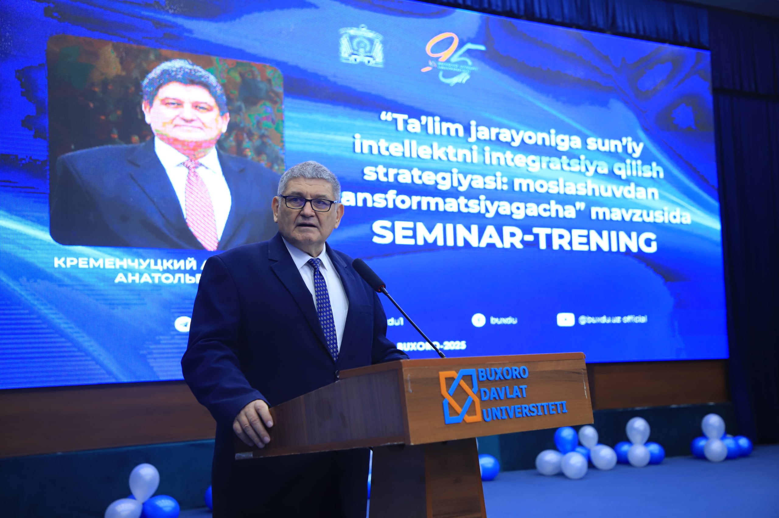 Faollar yig‘ingohida o'tkazilgan seminar-treningni L.N. Gumilyov nomidagi Yevroosiyo Milliy Universiteti huzuridagi Hindiston–Qozog‘iston axborot va kommunikatsiya texnologiyalari sohasidagi Mukammallik markazi direktori, axborot-kommunikatsiya texnologiyalari bo‘yicha xalqaro ekspert, World Summit Award (WSA) bo‘yicha Qozog‘iston milliy eksperti, texnika fanlari nomzodi, professor Anatoliy Kremenchutskiy olib bordi. Mazkur tadbir BuxDU rektori Obidjon Xamidov boshchiligida tashkil etilib, unda universitet prorektorlar, fakultet dekanlari, departament va bo‘lim boshliqlari, kafedra mudirlari faol ishtirok etdilar. Seminar oliy ta’lim tizimida boshqaruv va o‘quv jarayonini zamonaviy raqamli texnologiyalar asosida takomillashtirishga qaratilgani bilan alohida ahamiyat kasb etdi.