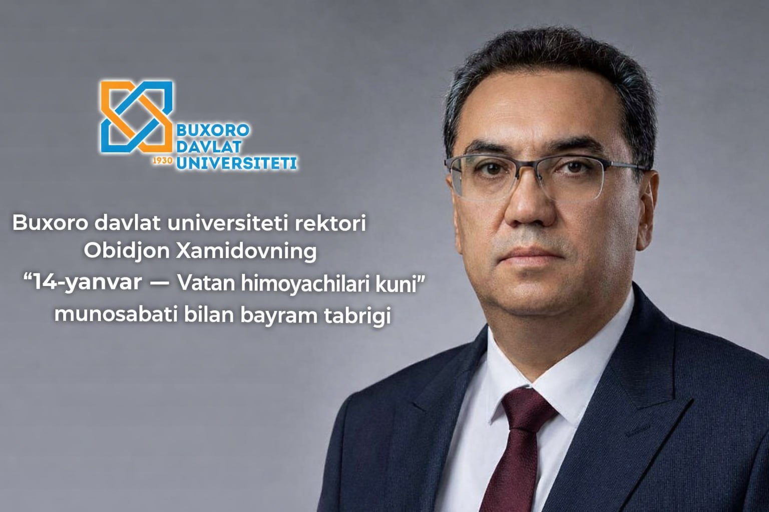 Buxoro davlat universiteti rektori Obidjon Xamidovning “14-yanvar — Vatan himoyachilari kuni” munosabati bilan bayram tabrigi