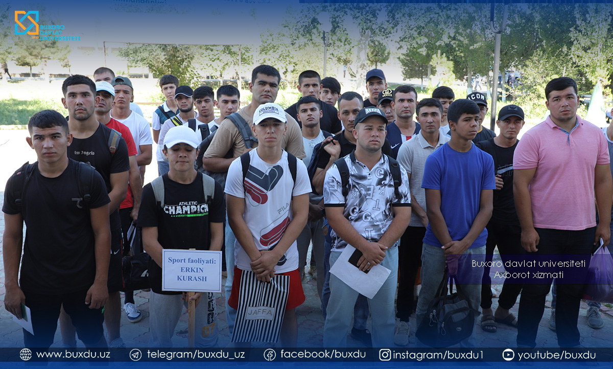 Buxoro davlat universitetida 2022/2023-oʻquv yili uchun kasbiy-ijodiy imtihonlar bo`lib o`tmoqda. Joriy yilda Buxoro davlat universitetida kasbiy-ijodiy imtihon topshirish uchun 940 nafar Abiturient hujjat topshirgan. Ikki kun mobaynida Sport faoliyati: Erkin kurash (sirtqi), voleybol (kunduzgi), qo`l to`pi ( kechki), stol tennis (sirtqi), Yengil atletika ( kechki) kabi yo'nalishlarda boshlangan imtihonlarni bevosita kuzatish maqsadida Oliy ta'lim vazirligi ishchi guruh a'zolari tashrif buyurishdi.