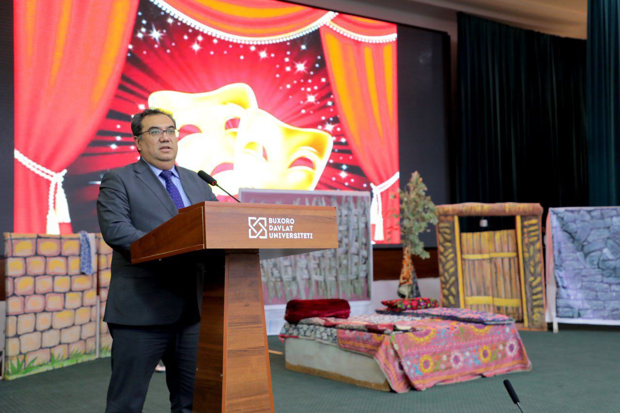 Bugun Buxoro davlat universiteti Bosh yig'ingohida talaba-yoshlarni teatr san'atiga muhabbat ruhida tarbiyalash va ma'naviy kamolotga yo'naltirish hamda iqtidorli yoshlarga o'z imkoniyatlarini yuzaga chiqarish maqsadida Talabalar teatr studiyalari tanlovining fakultetlararo bosqichi bo'lib o'tmoqda.