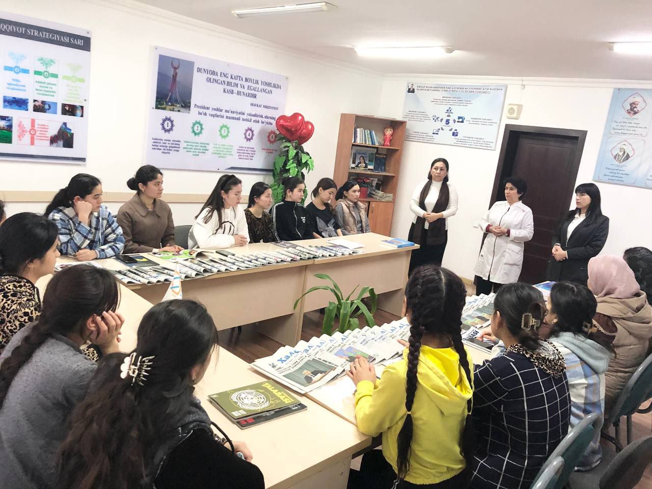 Suhbat davomida talabalarga sog'lom turmush tarzi qoidalariga rioya qilish zarurligi, zararli odatlar(chekish, giyohvandlik, alkogolizm)dan saqlanish, organizmni chiniqtirish hamda tibbiy madaniyat to'g'risida tushunchalar berildi.