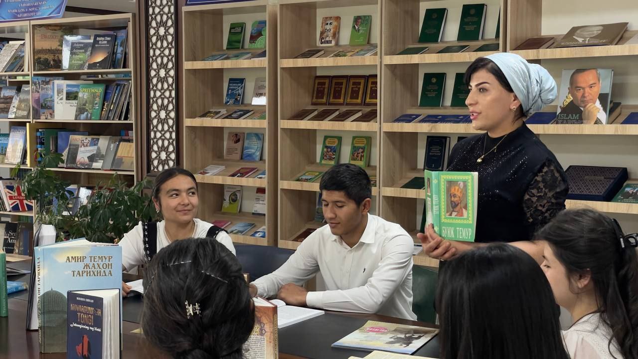 8-aprel kuni Iqtsodiyot va turizm fakulteti tyutori N.M.Aslonova o'ziga biriktirilgan 1-bosqich 3-1MAR-24 guruh talabalari bilan birgalikda BuxDU ARM xodimasi hamkorlikda talabalari o'rtasida yirik davlat arbobi, buyuk sarkarda, kuchli, markazlashgan davlat asoschisi, ilm-fan va madaniyat homiysi Amir Temur tavalludining 689 yilligi munosabati bilan "Sohibqiron Amir Temur faxrimiz, g'ururimiz " mavzusida davra suhbati tashkil etildi.