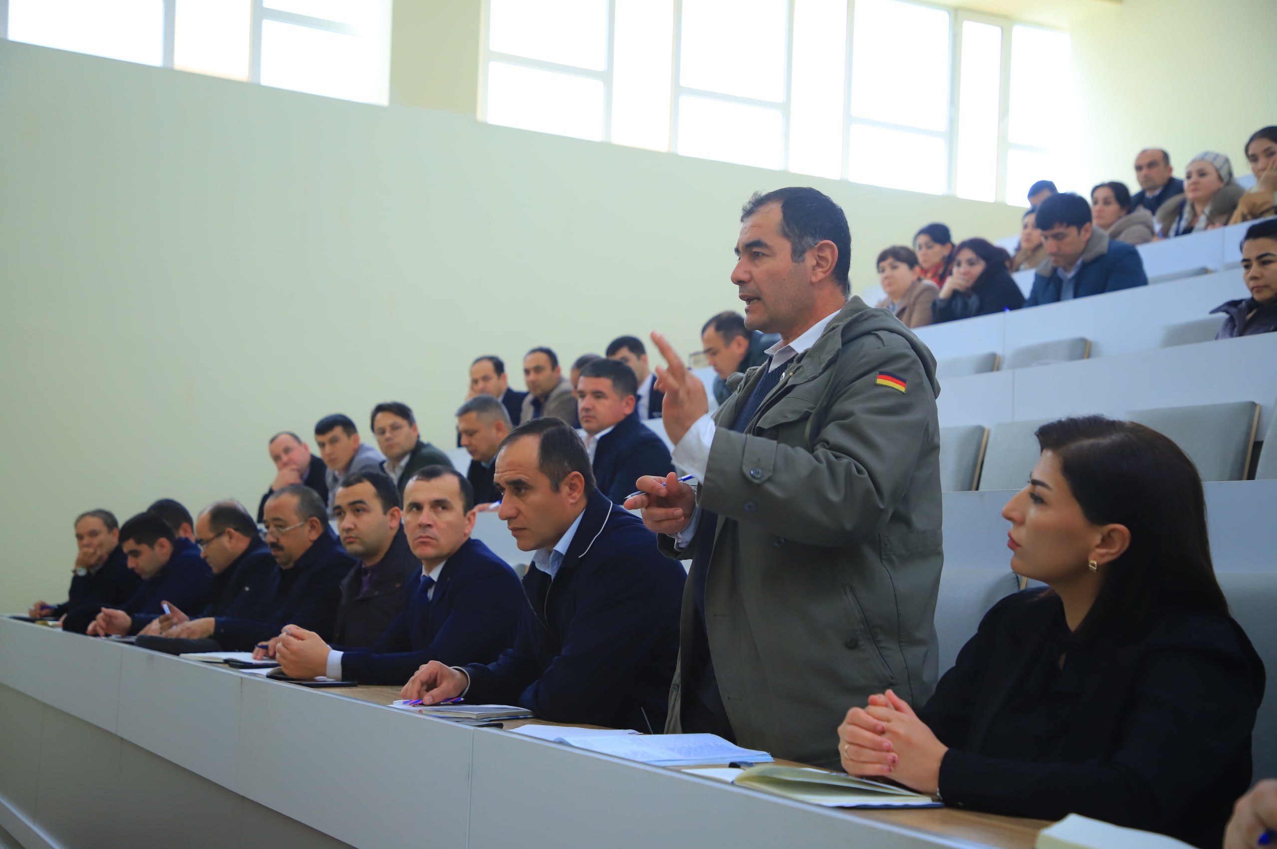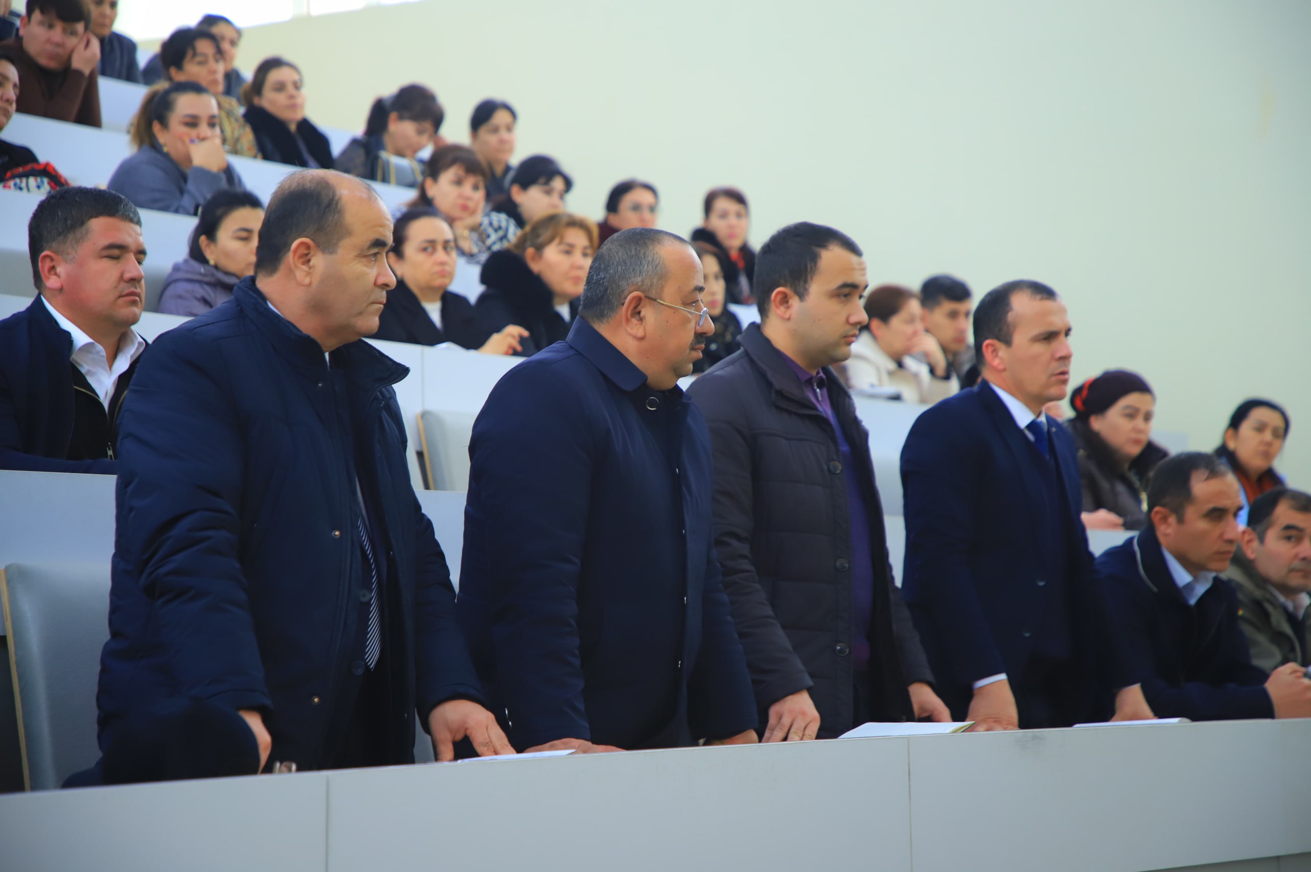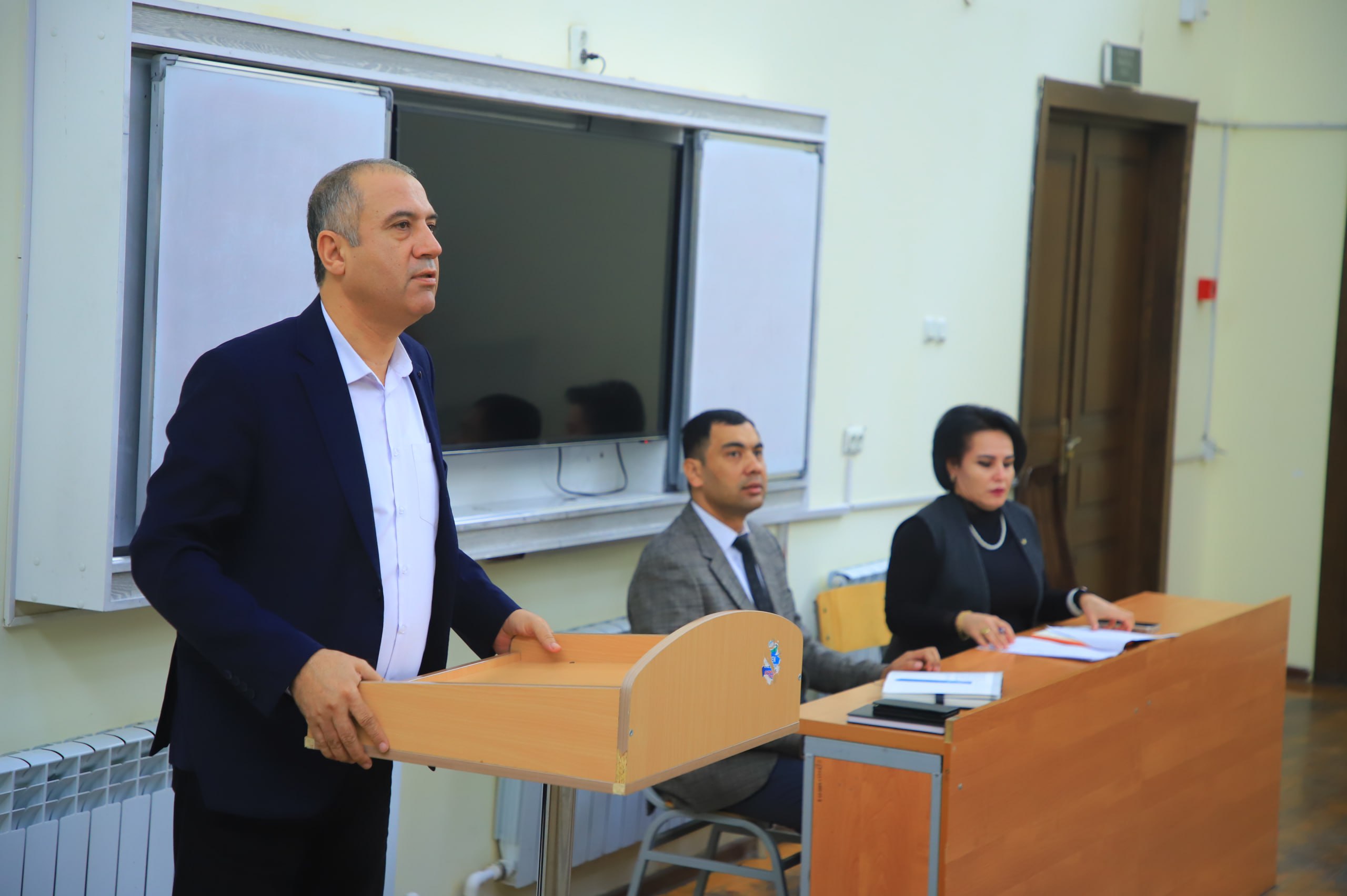Seminarda universitet birinchi prorektori A. Nazarov, Inson resurslarini boshqarish departamenti boshlig‘i U. Fayziyeva,