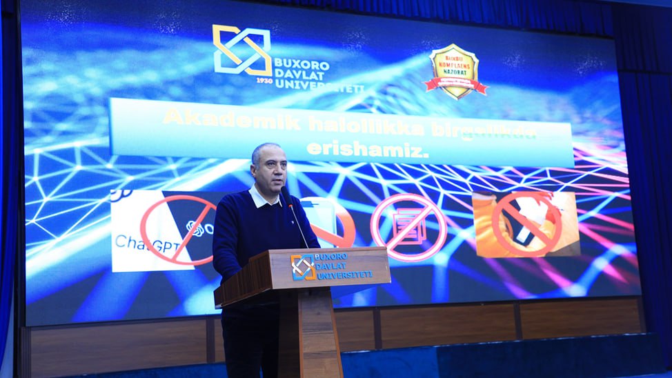 Fizika-matematika va axborot texnologiyalari fakulteti talabalari hamda pedagoglari ishtirokida, Buxoro viloyat IIB profilaktika inspektorlari hamkorligida o‘tkazilgan tadbirda oliy ta’limda akademik halollikni ta’minlash masalalari muhokama qilindi.