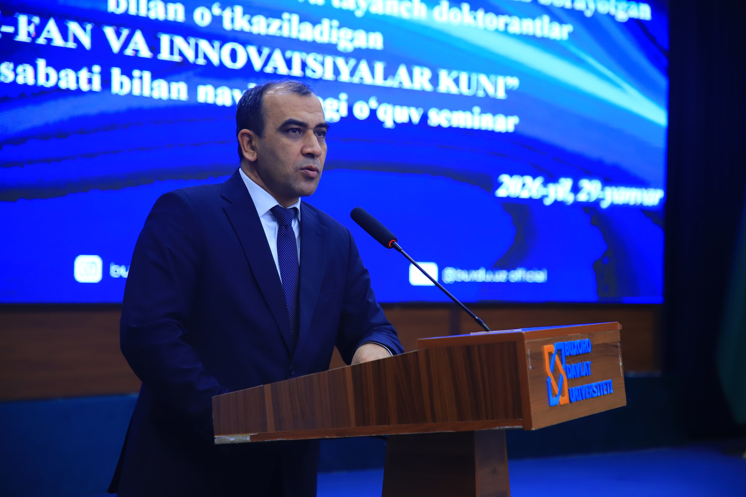 Mazkur seminarni BuxDU Ilmiy ishlar va innovatsiyalar bo‘yicha prorektori Kamoliddin Samiyev ochib berdi. O‘z nutqida prorektor oliy ta’limdan keyingi ta’lim tizimida amalga oshirilayotgan islohotlar, xususan, doktorantlarning o‘qish jarayonlari kredit-modul tizimi asosida tashkil etilayotganligi, "Research Methodology va Academic Writing" fanlarining joriy etilishi, kursdan-kursga ko‘chirish jarayonlari aynan ushbu fanlar natijalari asosida amalga oshirilishi haqida batafsil ma’lumot berdi. Shuningdek, doktorantlarning o‘quv jarayonidagi kelib-ketish holatlari, intizom va mas’uliyat masalalariga ham alohida to‘xtalib o‘tdi.