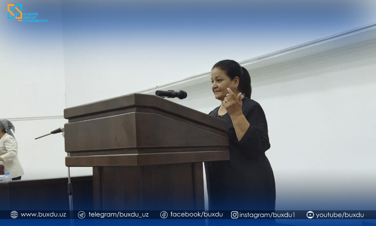 Joriy yilning 28 sentyabr kuni soat 10:00 da filologiya fanlari doktori (DSc) ilmiy darajasini olish uchun Buxoro davlat universiteti o‘zbek tili va adabiyoti kafedrasi dotsenti Rajabova Ma’rifat Baqoyevnaning 10.00.02 – O‘zbek adabiyoti ixtisosligida “Alisher Navoiy ijodida folklor janr, motiv va obrazlari stilizasiyasi” mavzusidagi filologiya fanlari doktori (DSc) ilmiy darajasini olish uchun tayyorlagan dissertasiya ishining onlayn va oflayn muhokamasi bo‘lib o‘tdi.Muhokamada tadqiqotchi olima Alisher Navoiy ijodida folklorning mif, afsona, rivoyat, ertak, naql, doston, latifa singari epik janrlari, mifologik hamda diniy afsonaviy motiv va obrazlar vositasida yaratilgan folklorizmlarning tabiati va badiiy vazifalari ulug‘ shoirning xalq lirik va marosim qo‘shiqlari, yig‘i-yo‘qlovlarga ilmiy, badiiy munosabatini yoritish hamda marsiya, navhalar yaratishda motam marosimi qo‘shiqlaridan ta’sirlanganini asoslashga harakat qildiBundan tashqari seminar jarayonida tadqiqotchiga berilgan savol va takliflar, rasmiy va norasmiy taqrizchilar chiqishlari keng muhokama qilindi. Muhokama muvaffaqiyatli o‘tdi. Tadqiqotchining keyingi ilmiy izlanishlariga omad tilab qolamiz!BuxDU Matbuot xizmati