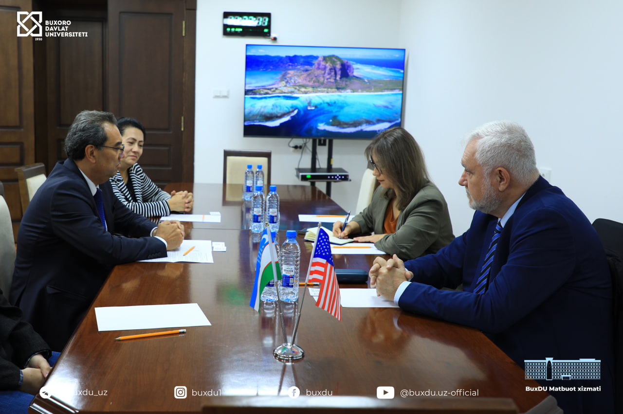 Delegatsiya vakillari universitet rektori Obidjon Xamidov bilan uchrashib, ikki tomon uchun manfaatdor bo’lgan hamkorlik yo’nalishlarini muhokama qildilar. Xususan, Kent davlat universiteti vitseprezidenti Marcelo Fantoni tomonidan eng ommabop ya’lim yo’nalishlarini Buxoro davlat universiteti bilan hamkorlikda yo’lga qo’yish ishlari muhokama qilindi. Ikkala universitet tomonidan dizayn, bizness hamda kimyoviy fizika yo’nalishlariga ko’proq ustuvorlik berildi. Bundan tashqari, Kent va Buxoro davlat universitetlarining qo’shma grant loyihlarini ishlab chiqish, professor-o’qituvchilar va talabalar almashinuvi, qo’shma ilmiy tadqiqotlarni amalga oshirish kabi masalar ham muhokama qilinib, Ikki universitet o’rtasida hamkorlik ishlarini jadallashtirish maqsadida yo’l xaritasini tuzish va uning asosida keyingi vazifalarni belgilash kelishib olindi.