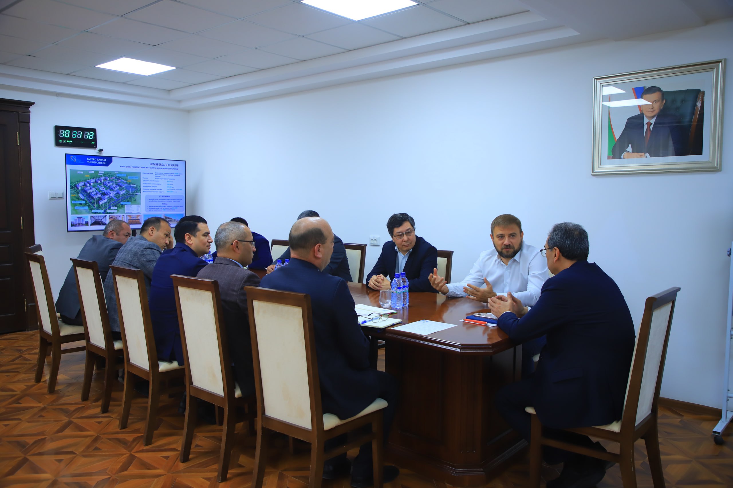 Buxoro davlat universitetida universitet rektori Obidjon Xamidov boshchiligida Yangi Oʻzbekiston universiteti vakillari bilan rasmiy uchrashuv bo‘lib o‘tdi. Unda professor Pavel Belov hamda Yangi O'zbekiston universiteti Fizika departamenti dotsenti Alisher Sanetullayev ishtirok etdi.